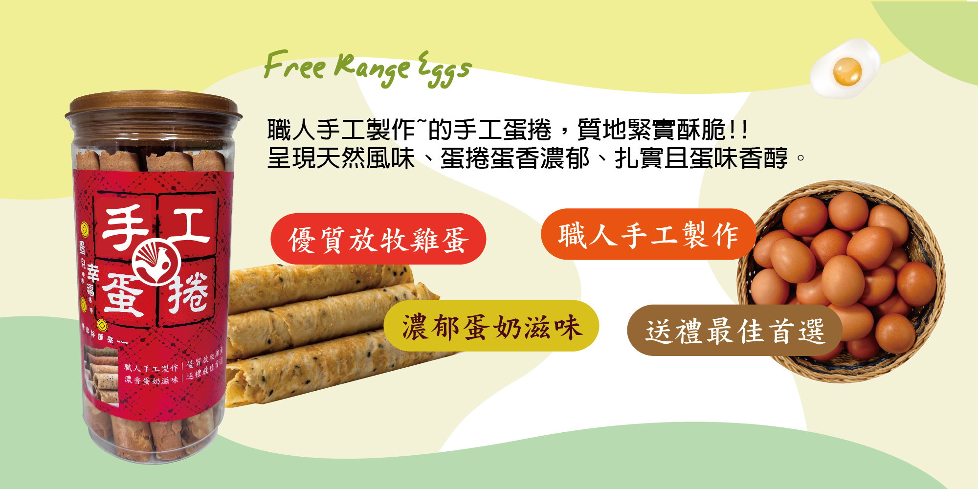 【香草山G】手工蛋捲 嚴選放牧鮮雞蛋~蛋捲 芝麻 原味 伴手禮 熱賣中放牧鮮雞蛋 **友善飼養 天然放牧**無動物用藥殘留,無添加抗生素的雞蛋*